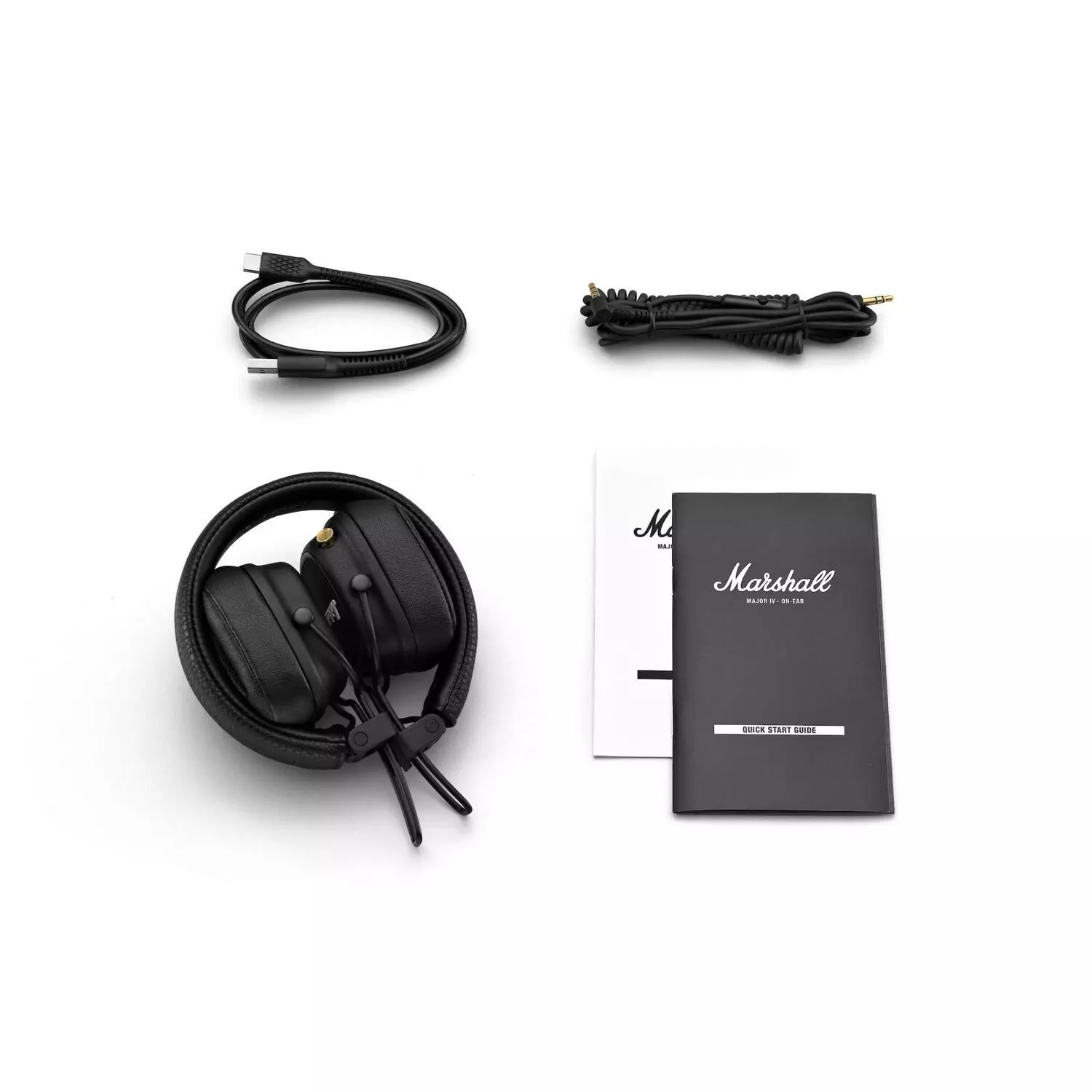 Audífonos Marshall con sonido potente gracias a controladores de 40 mm. Autonomía de más de 80 horas y carga rápida (15 min = 15 h), compatibles con carga inalámbrica. Diseño ergonómico, ligero (165 g), plegable y con controles intuitivos. Bluetooth 5.0 y entrada 3.5 mm. Condición reacondicionada con garantía de 13 meses.